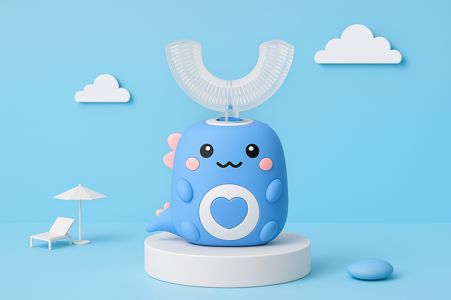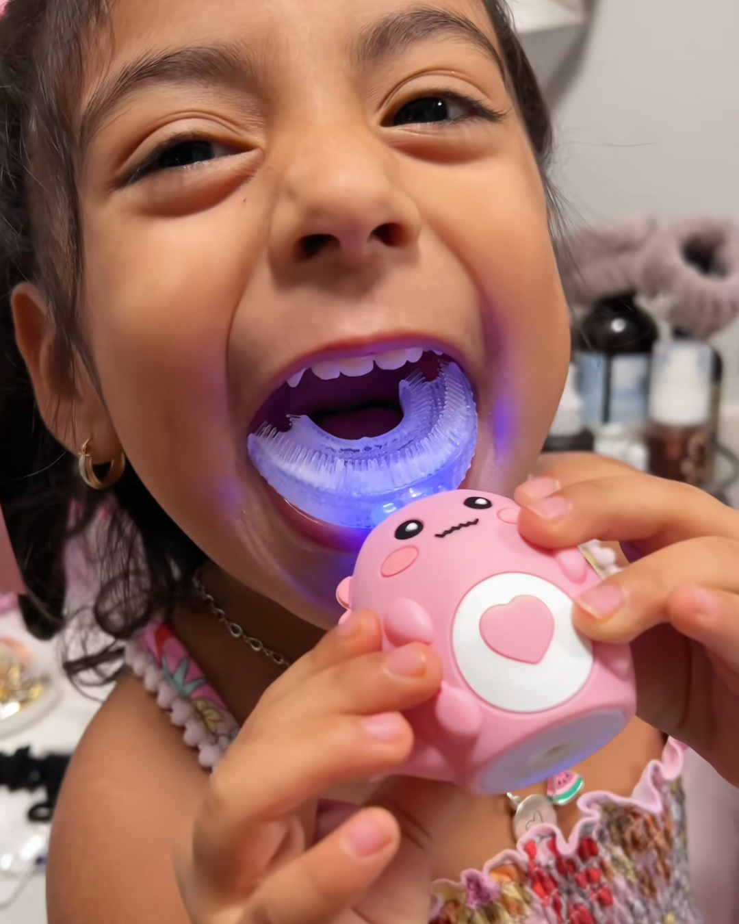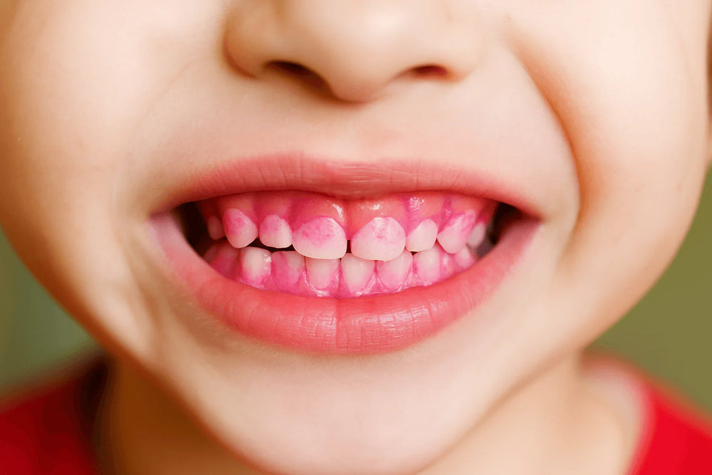 A test was conducted with a coloring tablet. The result was achieved with a classic toothbrush on the left and a uBrush on the right.